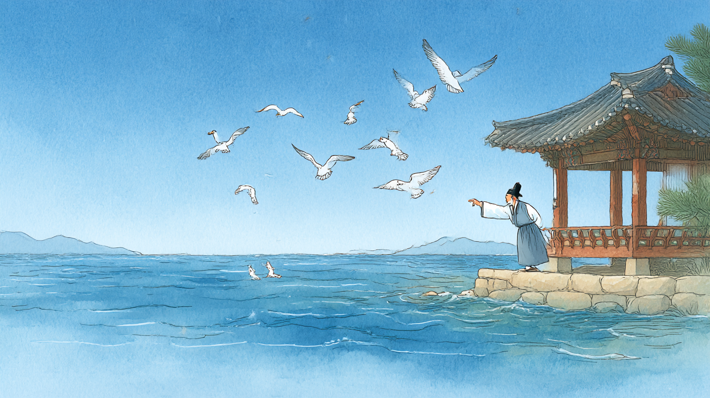 재미있는 건, 그의 호도 반구(伴鷗)라는 거야. 이게 무슨 뜻이냐면 '갈매기와 벗한다'는 의미거든. 호 자체에서 이미 자연을 가까이하고 친구처럼 여기려는 그의 마음이 느껴지지 않니? 이런 삶의 태도가 「영언십이장」 곳곳에 잘 녹아 있단다.