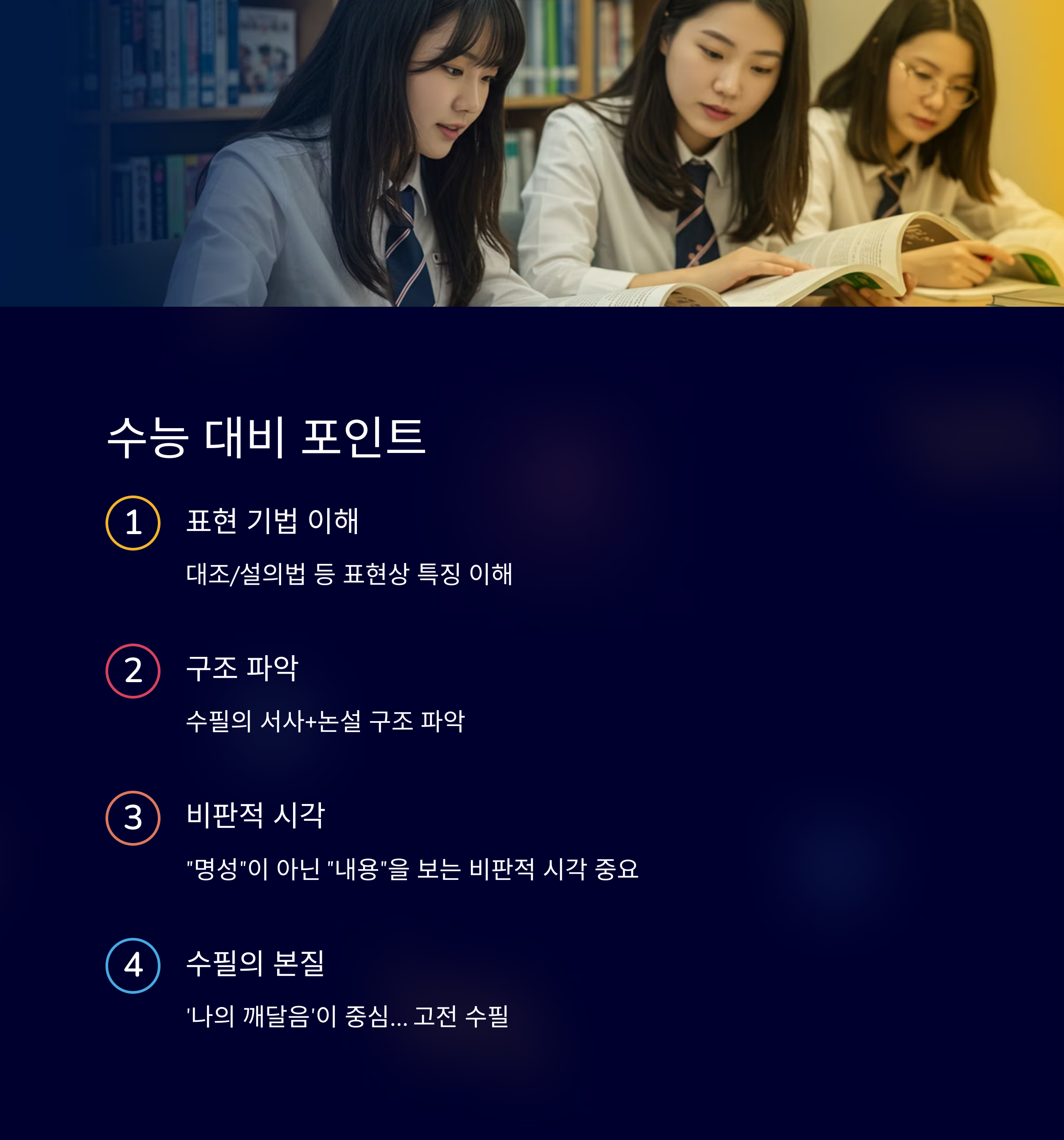 여러분도 이 글을 통해 단순히 수능을 위한 독해를 넘어서, 자신을 돌아보는 눈을 길러보셨으면 좋겠습니다.