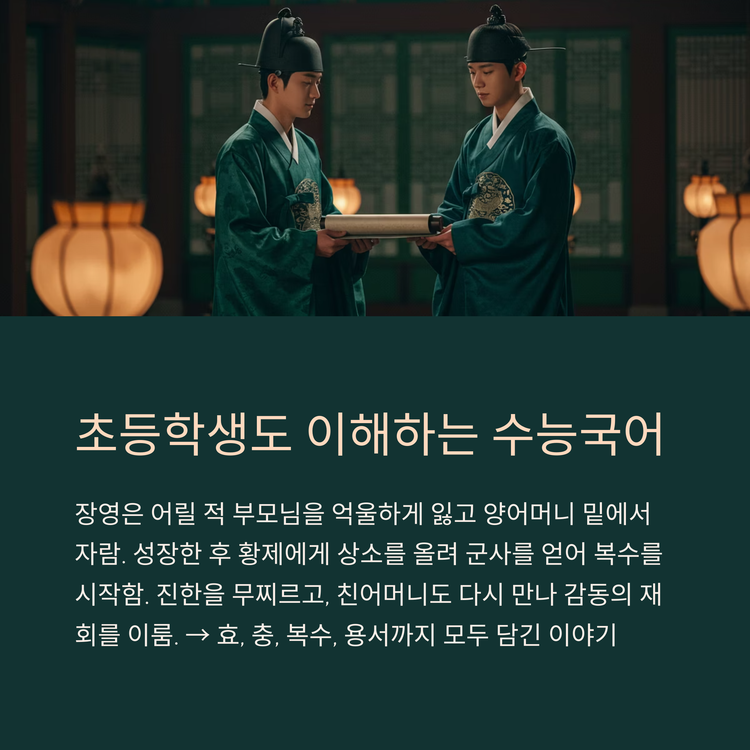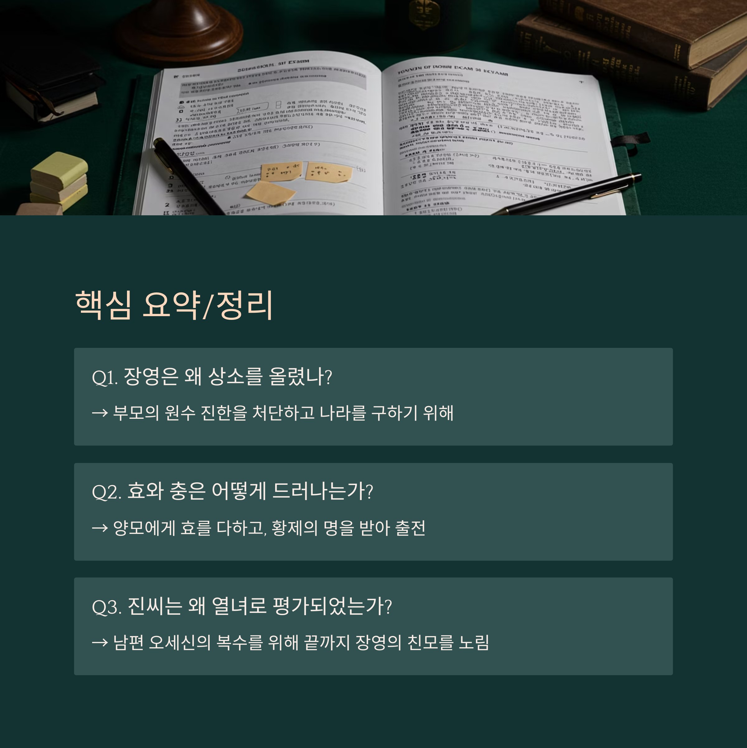 이런 배경을 바탕으로 읽으면, 장영이 단순히 ‘복수’를 넘어서 ‘효자’, ‘충신’, ‘의로운 인물’로 그려지는 이유를 이해할 수 있답니다!
