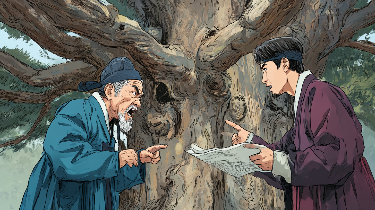 당나무를 팔자는 제안에 반대하며 전통을 지키려는 보수적 인물입니다. 전통적 가치의 수호자로 기능합니다.