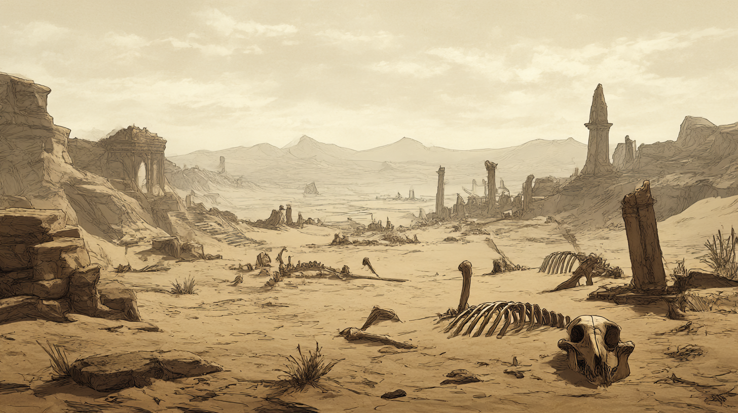 '백일이 작열하고', '모래 속에 사멸한 영겁의 허적' 같은 표현이 이 공간의 무시무시한 분위기를 보여주죠.