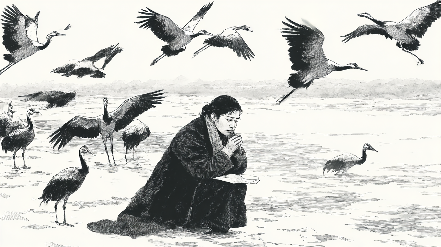 특히 "두 낮 두 밤을 두루미처럼 울어 울어"는 그녀의 슬픔이 얼마나 깊은지를 보여주는 대표적 이미지예요.
