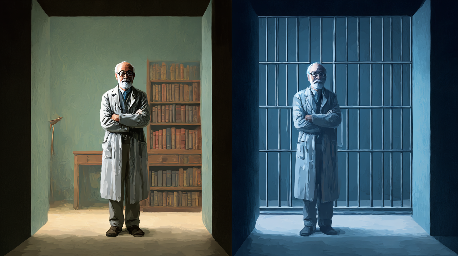 손 박사의 처방은 일종의 허위 의식일 수도 있어요. 윤일섭이 마음속 쇠창살을 제거해도, 현실의 울타리는 그대로 존재하죠. 결국 자기 자신만 바꾼다고 세상이 바뀌는 건 아니라는 현실의 벽을 마주하게 됩니다.