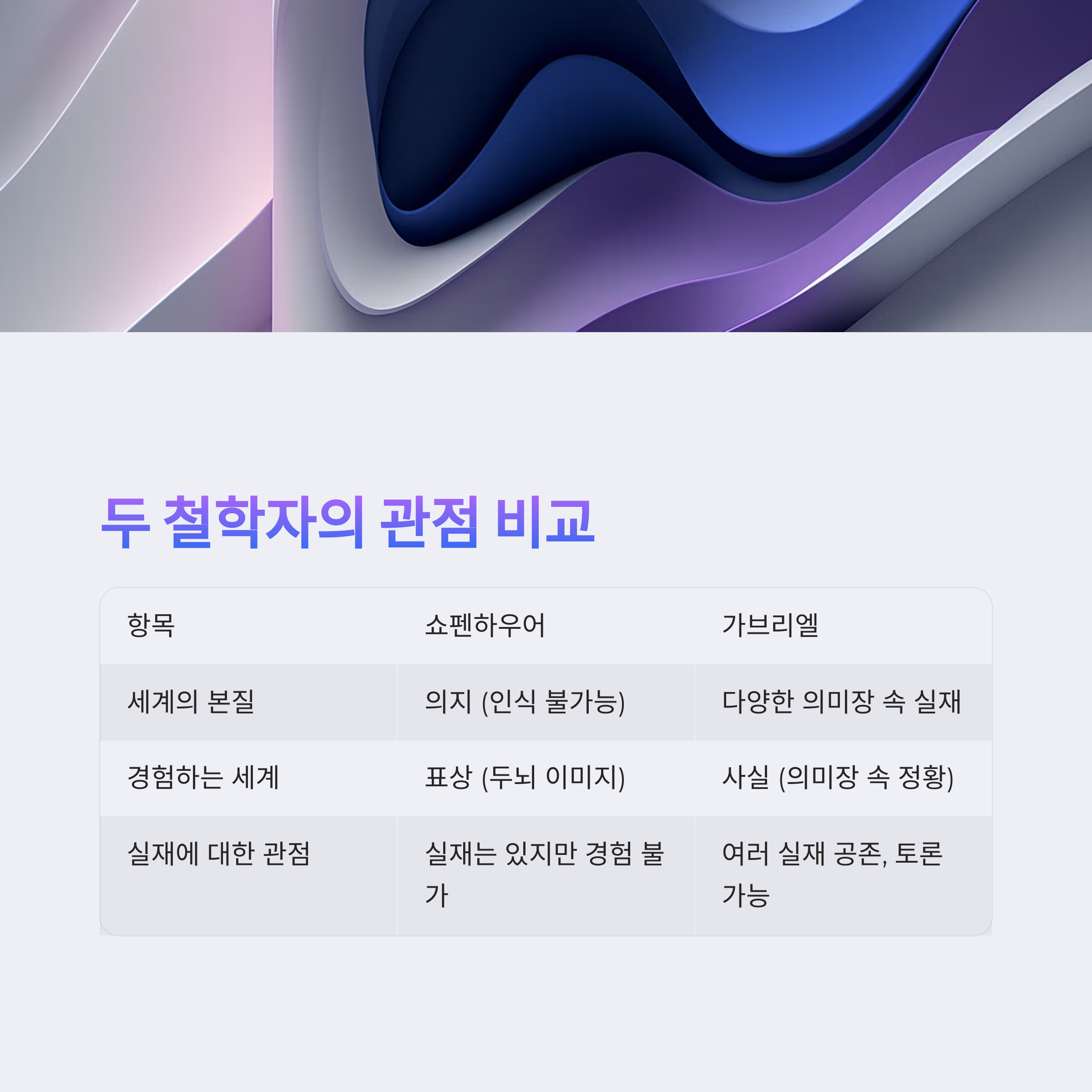 비교 항목 쇼펜하우어 (가) 가브리엘 (나)