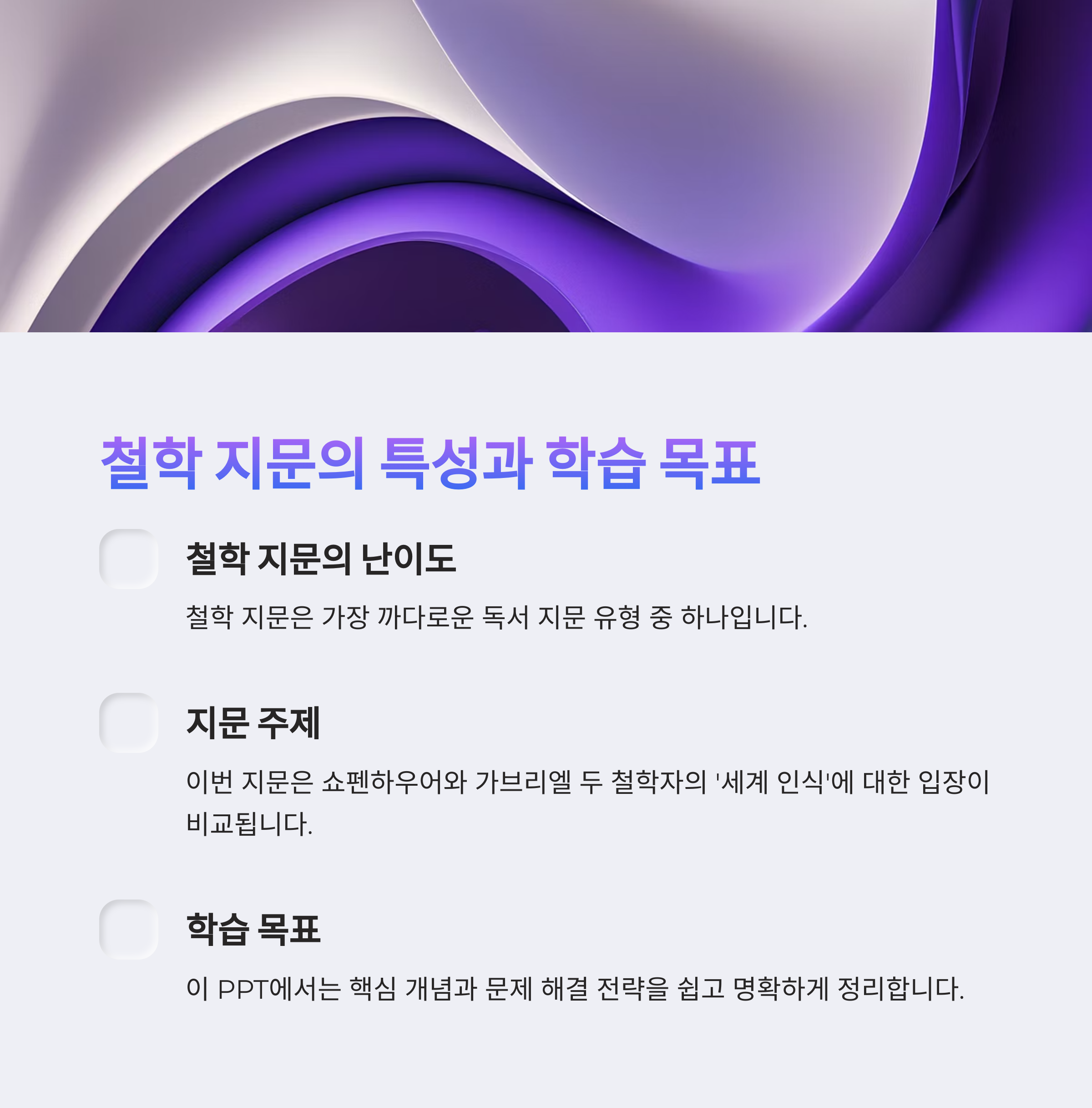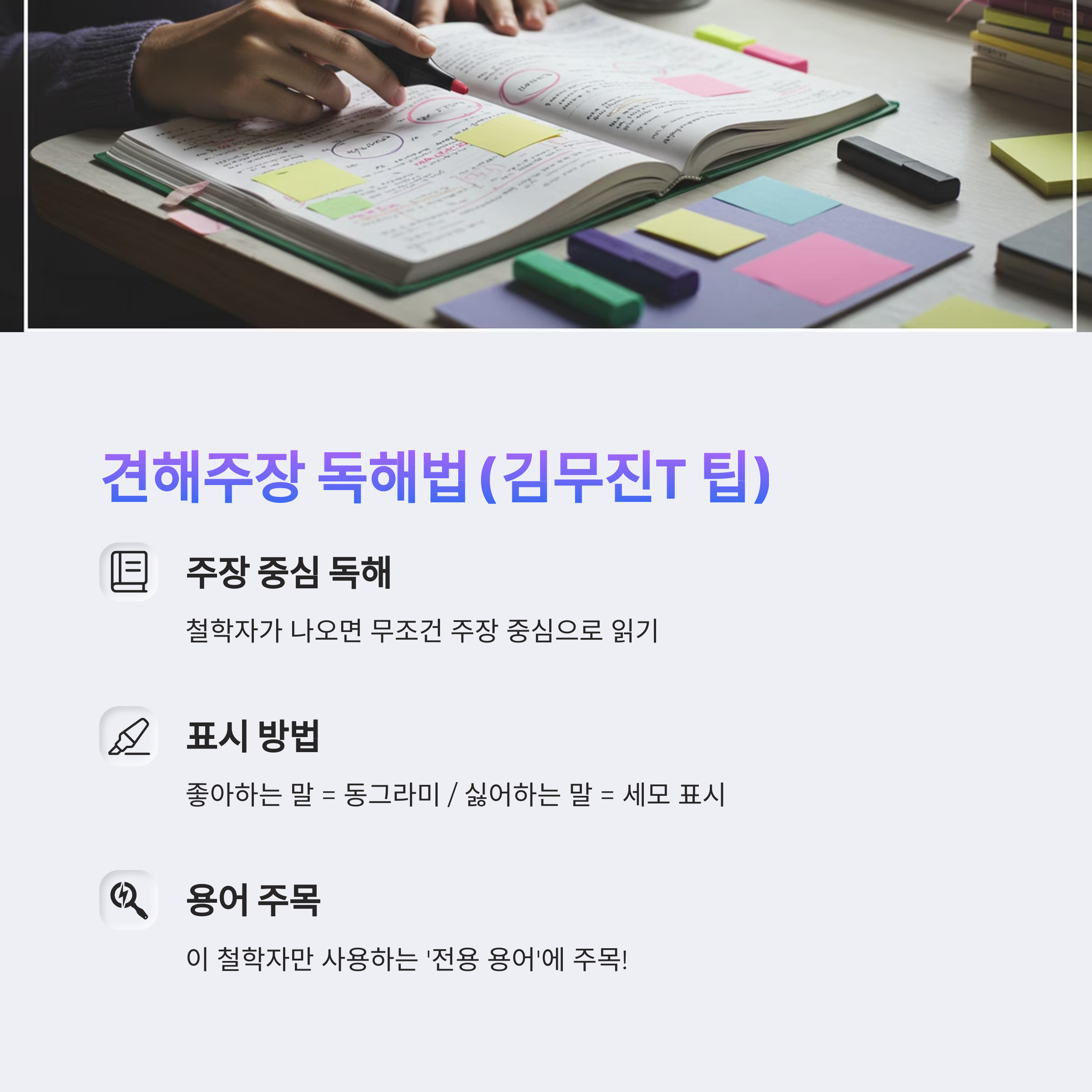 이 두 가지를 잡고 가면, 어떤 철학 지문도 절대 어렵지 않답니다!
