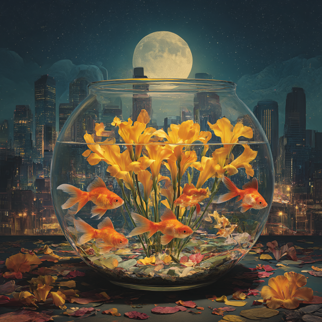 “열대어들은 수족관 속에서 목마르다” — 역설적인 이 표현은 도시의 풍요로움 속에서도 정작 우리 내면은 메말라 있다는 걸 보여주는 강렬한 메시지야.
