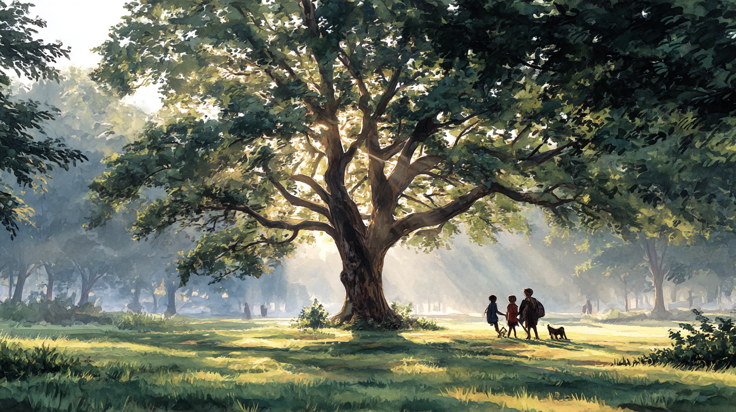 최하림의 「아침 시」는 병고를 겪던 시인이 요양 중 자연과 아이들의 생명력에서 위안을 받으며 쓴 작품입니다. 굴참나무와 아이들은 단순한 자연 요소가 아닌, 삶의 활력과 희망의 상징으로 형상화되어 있죠.