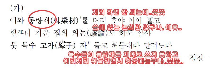 2016학년도 수능 국어 기출 해설 문학 고전시가 '어와 동량재를(정철)'