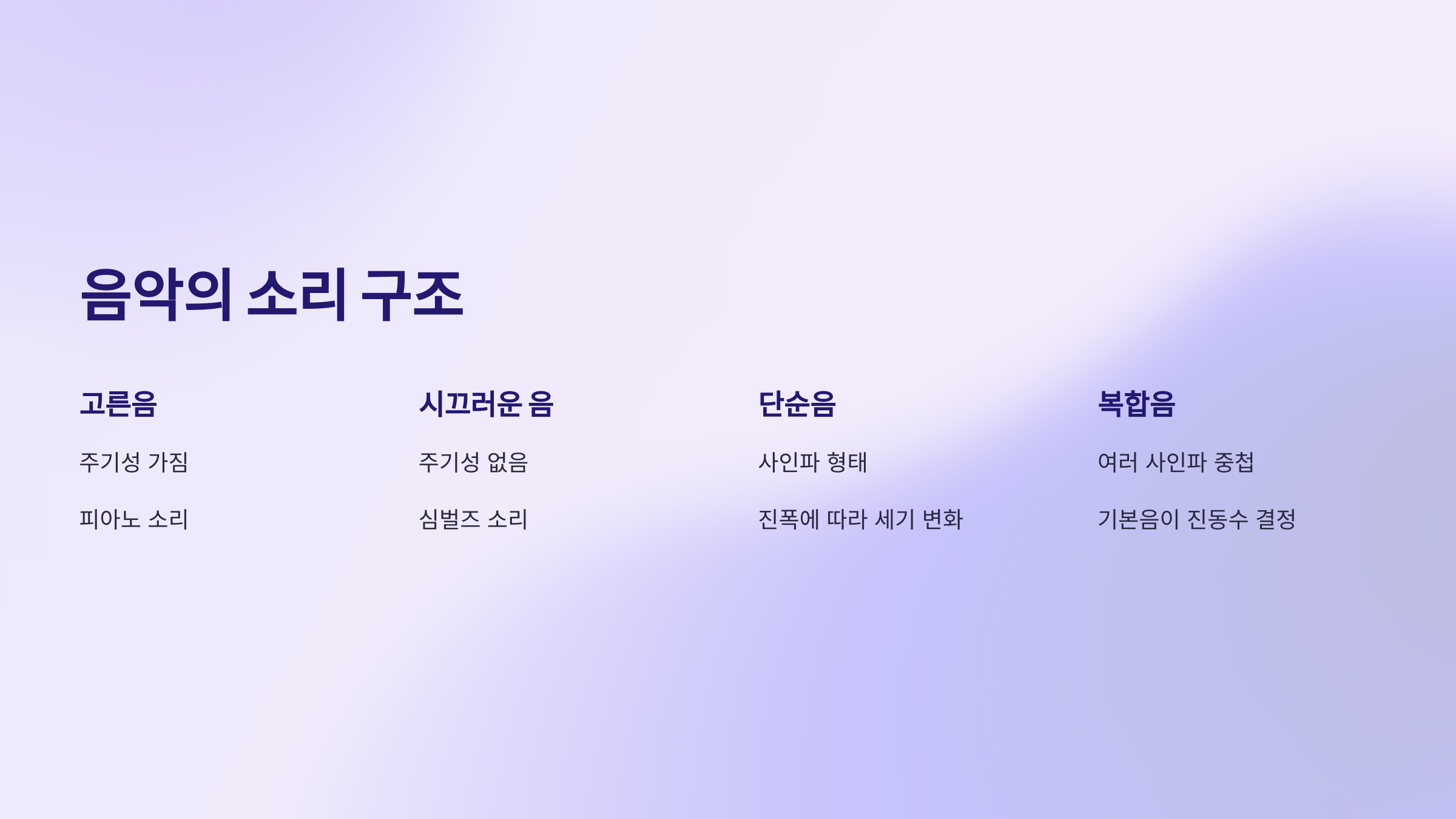 | "고른 음은 주기성을 갖지만, 시끄러운 음은 주기성을 갖지 않는다" | 주기성 갖음(○) vs 주기성 갖지 않음(▲) | 주기성(주기성) |