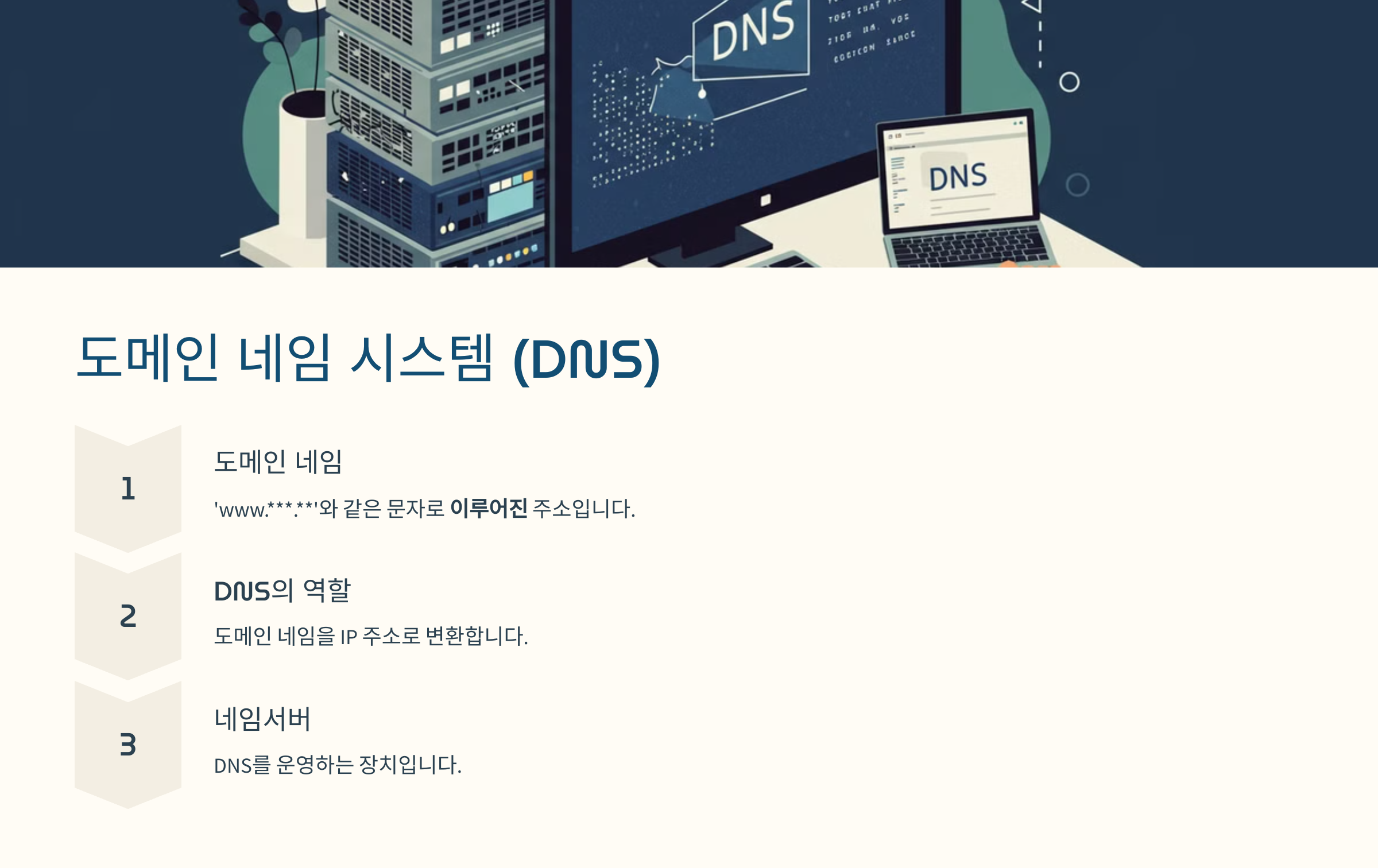 | 2️⃣ 네임서버 요청 | 컴퓨터가 네임서버에 IP 주소를 물어봄 |