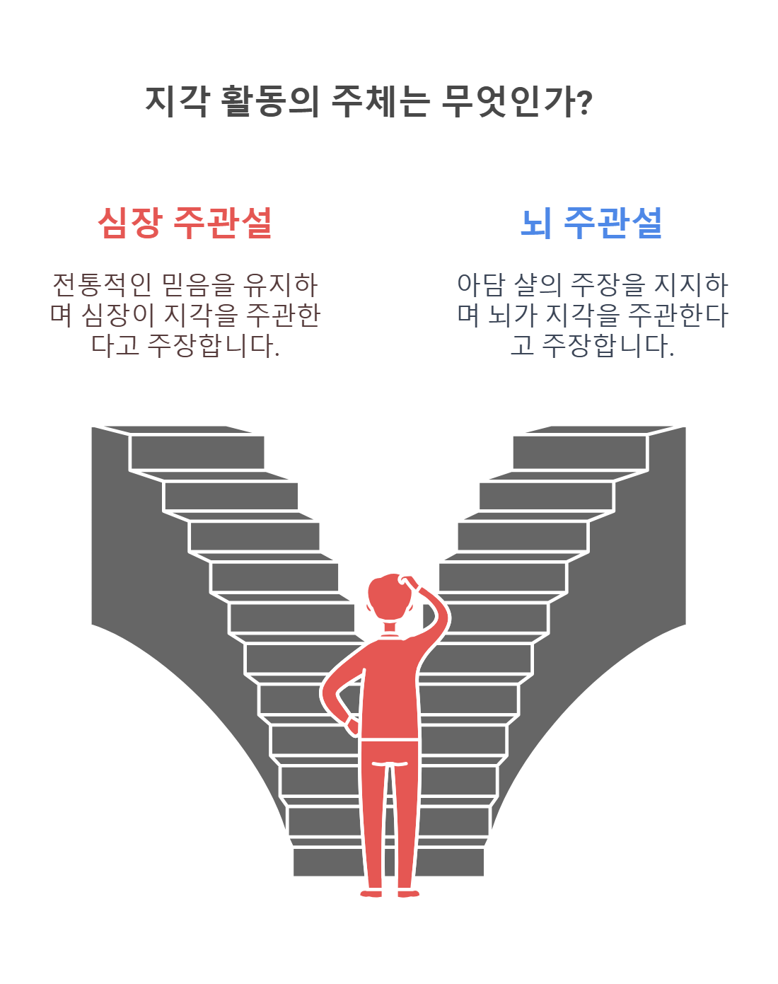 2️⃣ 이익과 최한기는 지각을 뇌가 아니라 ‘심장’(이익) 또는 ‘심’(최한기)이 담당한다고 주장.