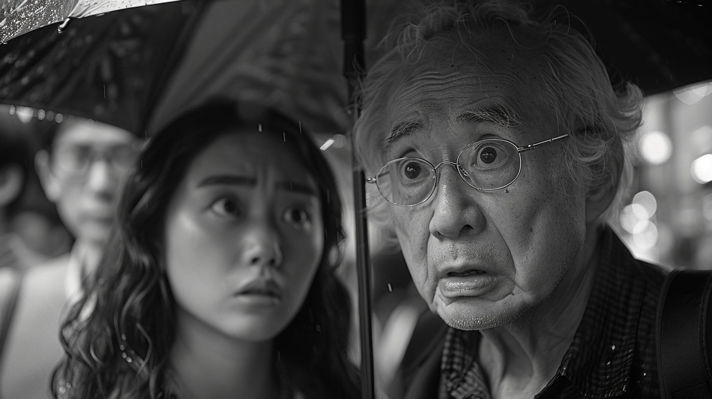 - 실패와 좌절: 경찰이 우산 케이스를 무시하자 결국 찌질한 모습으로 물러남
