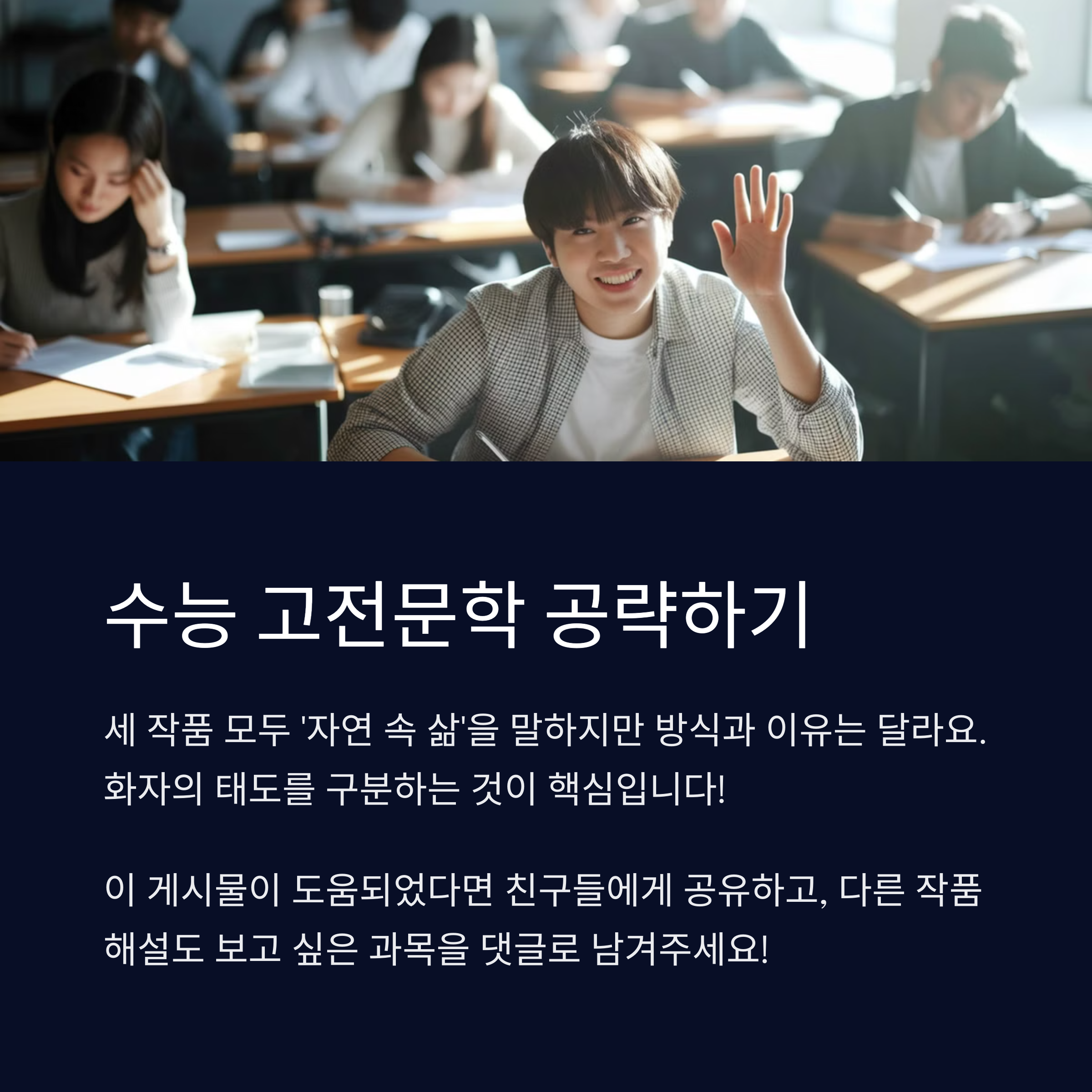 💡 TIP: 고전 문학은 ‘외워서 푸는 과목’이 아니라, 화자의 생각과 감정을 읽어내는 과목이에요.