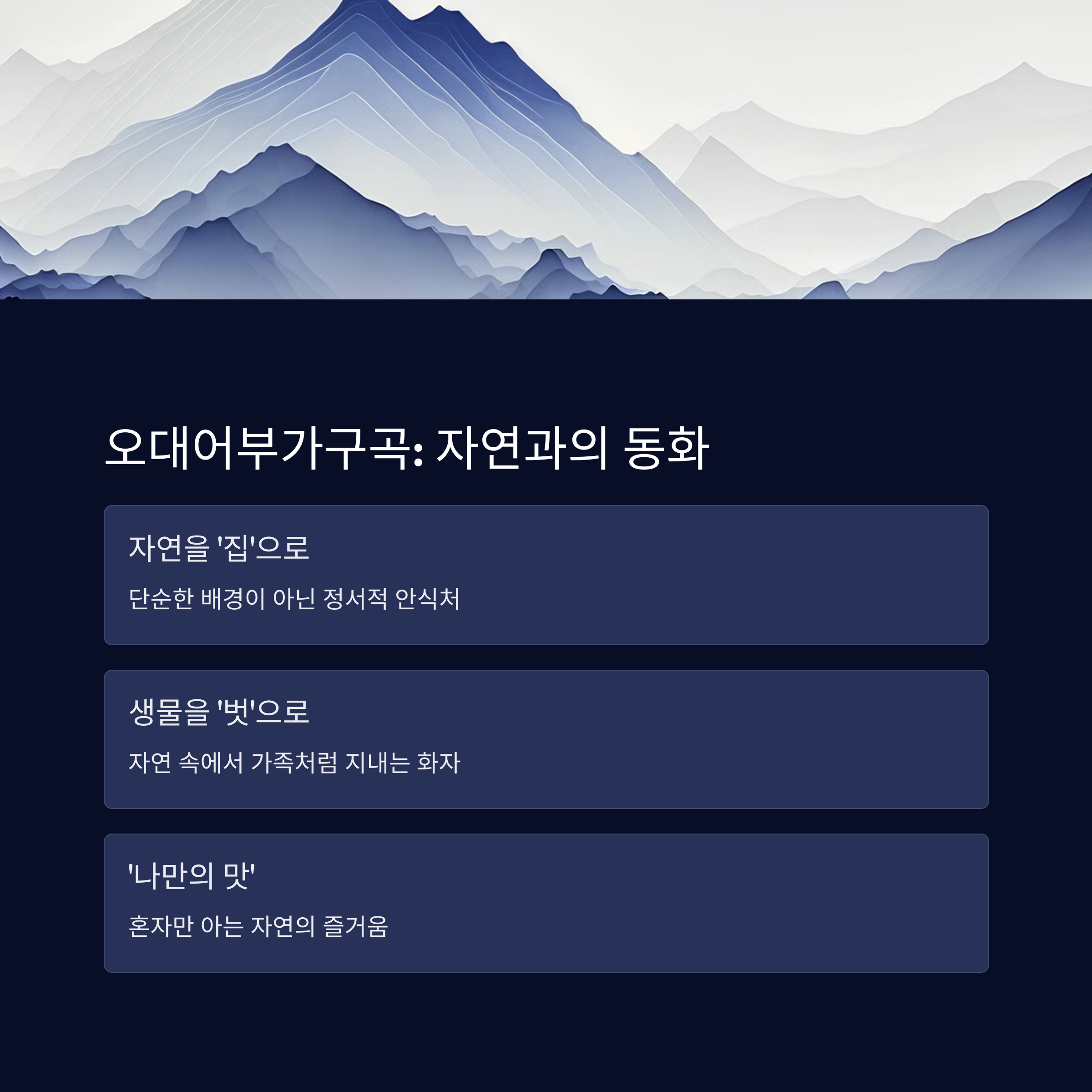 ✅ 체크포인트: '자연 속에서 혼자 산다'고 해서 무조건 외롭거나 부정적인 건 아니에요!