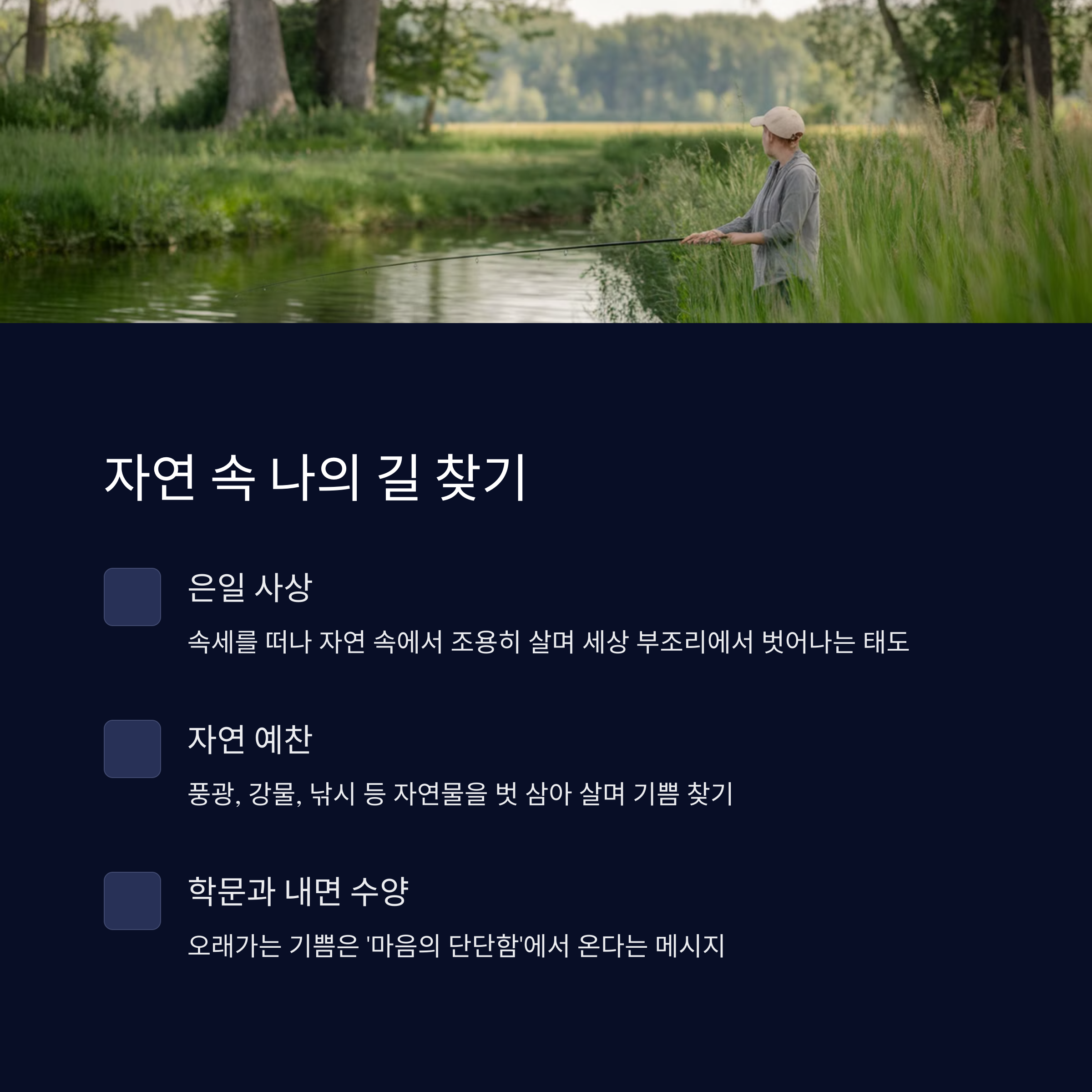 | 학문과 내면 수양 | 자연도 좋지만, 결국 오래가는 기쁨은 ‘마음의 단단함’이라는 메시지가 담겨 있어요. 고전 수필에서 특히 많이 나오는 태도랍니다. |