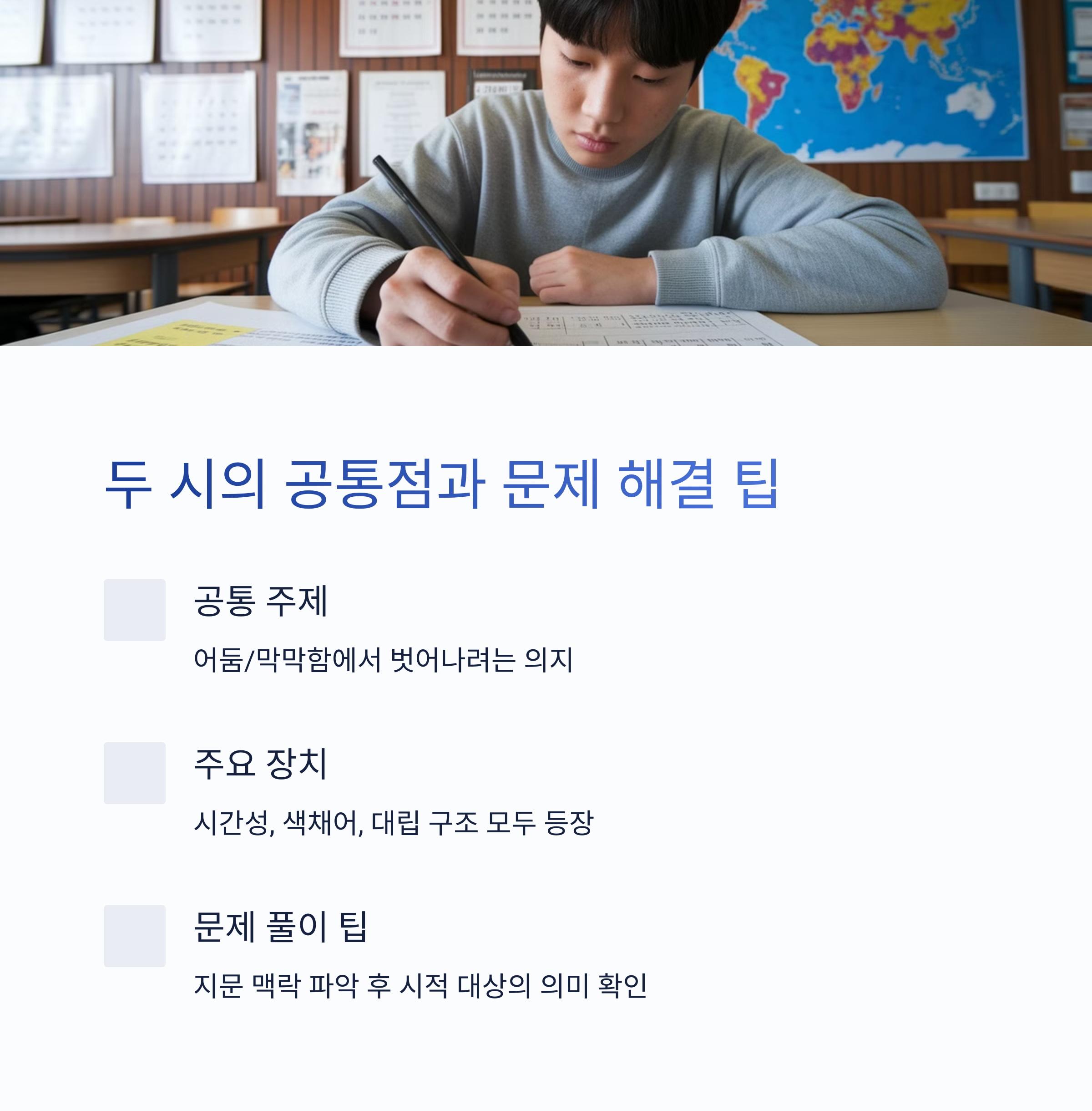 두 시 모두 ‘내적 고통을 자연/빛을 통해 극복하려는 의지’를 담고 있습니다.