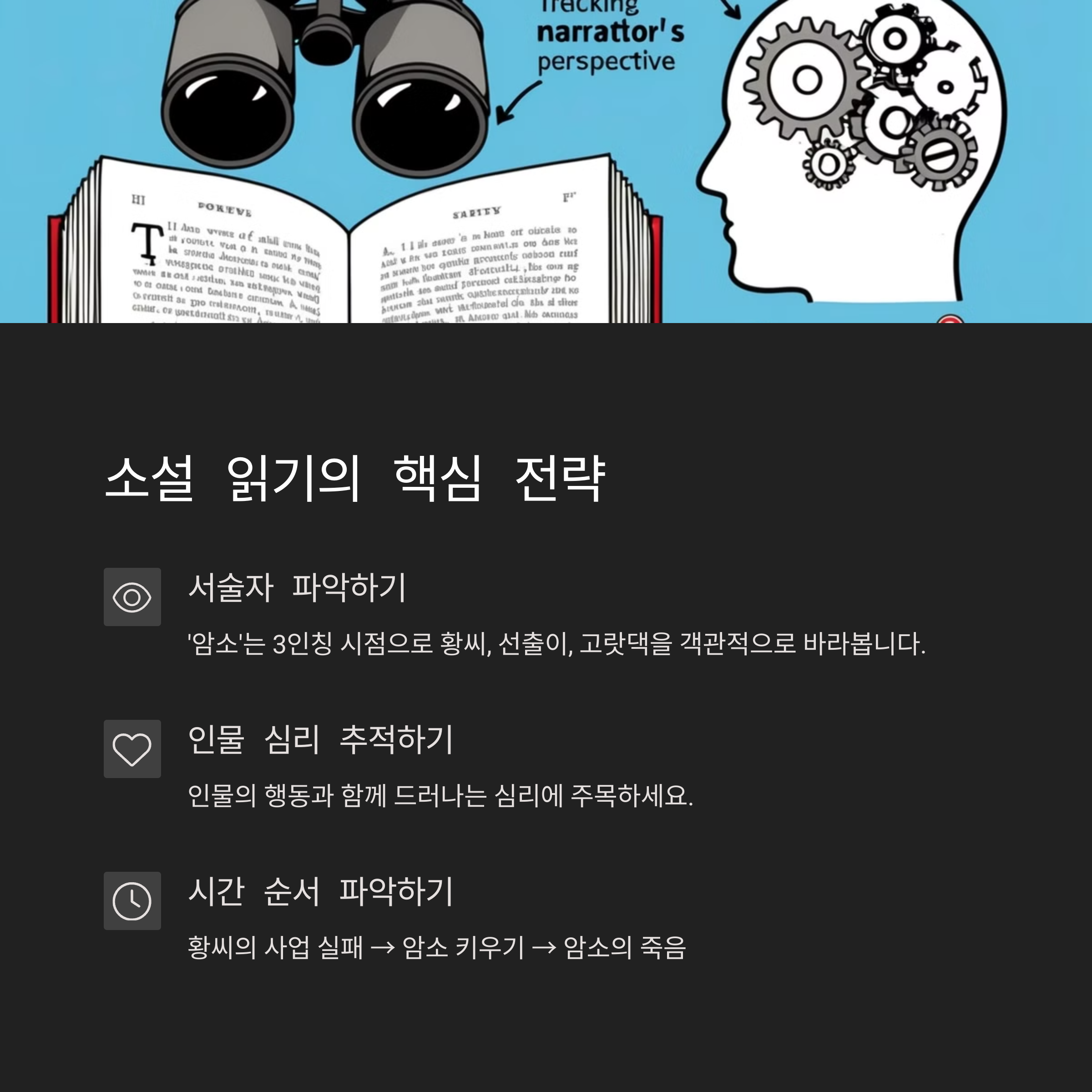 여러분도 할 수 있어요! '암소'처럼 어려운 현대소설도 이제는 두렵지 않죠? 기본적인 소설 읽기 방법만 익히면 어떤 작품이든 파악할 수 있습니다. 노베탈출의 길이 바로 눈앞에 있어요! 😊