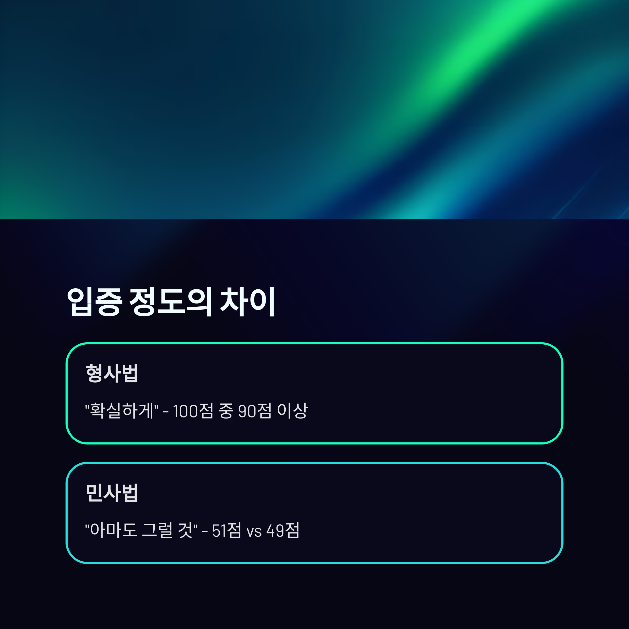 2. '입증 수준'의 차이를 정확히 이해하면 형사/민사 관련 문제의 절반은 해결됩니다.