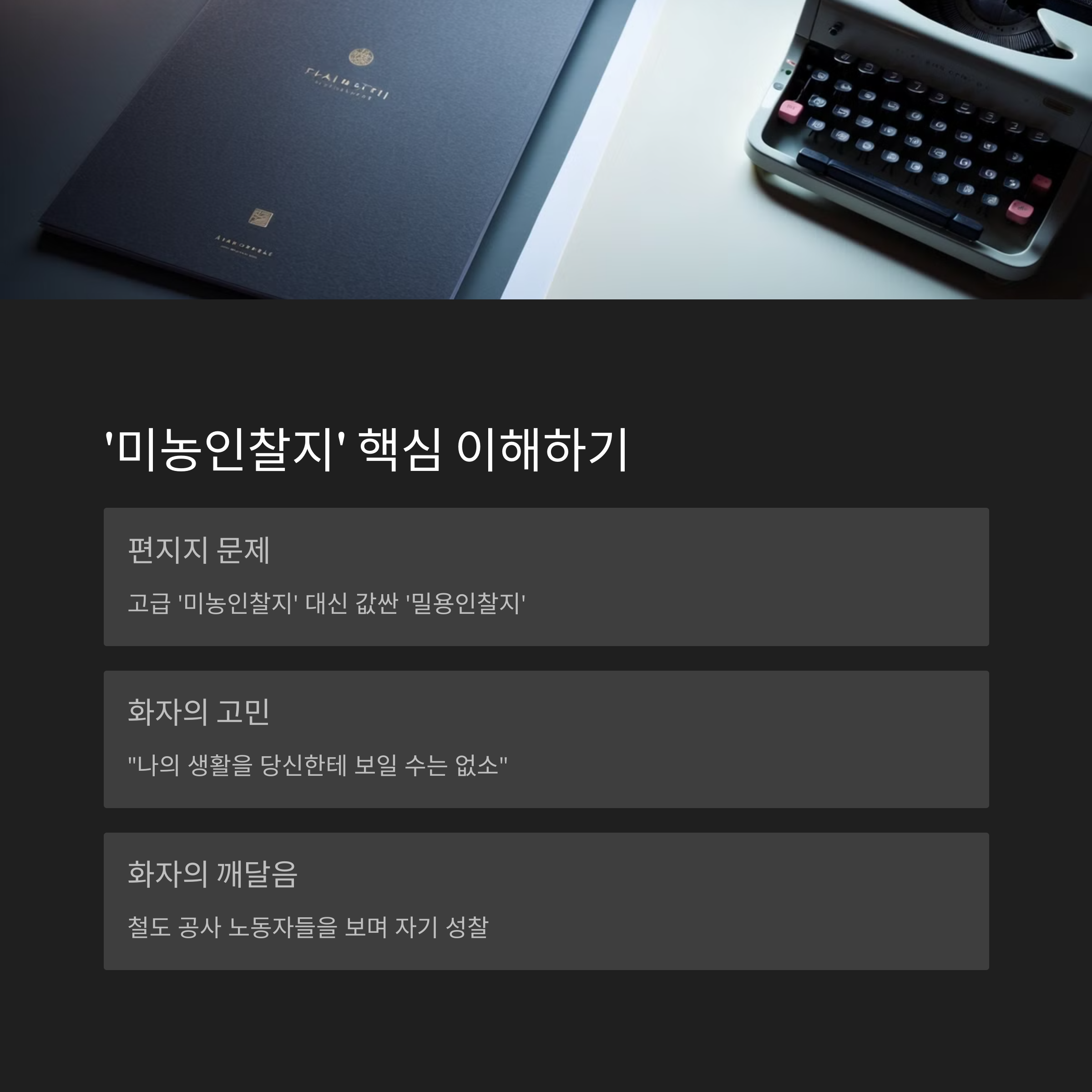 3. 화자가 본 현실화자는 매부네 집에서 돌아오는 길에 기차 창밖으로 '복선공사'(철도 건설)에서 일하는 약한 소년들과 여자들의 모습을 봤어요. 이 사람들의 힘든 노동 현실과 자신의 편지지 걱정을 비교하며 부끄러움을 느껴요.