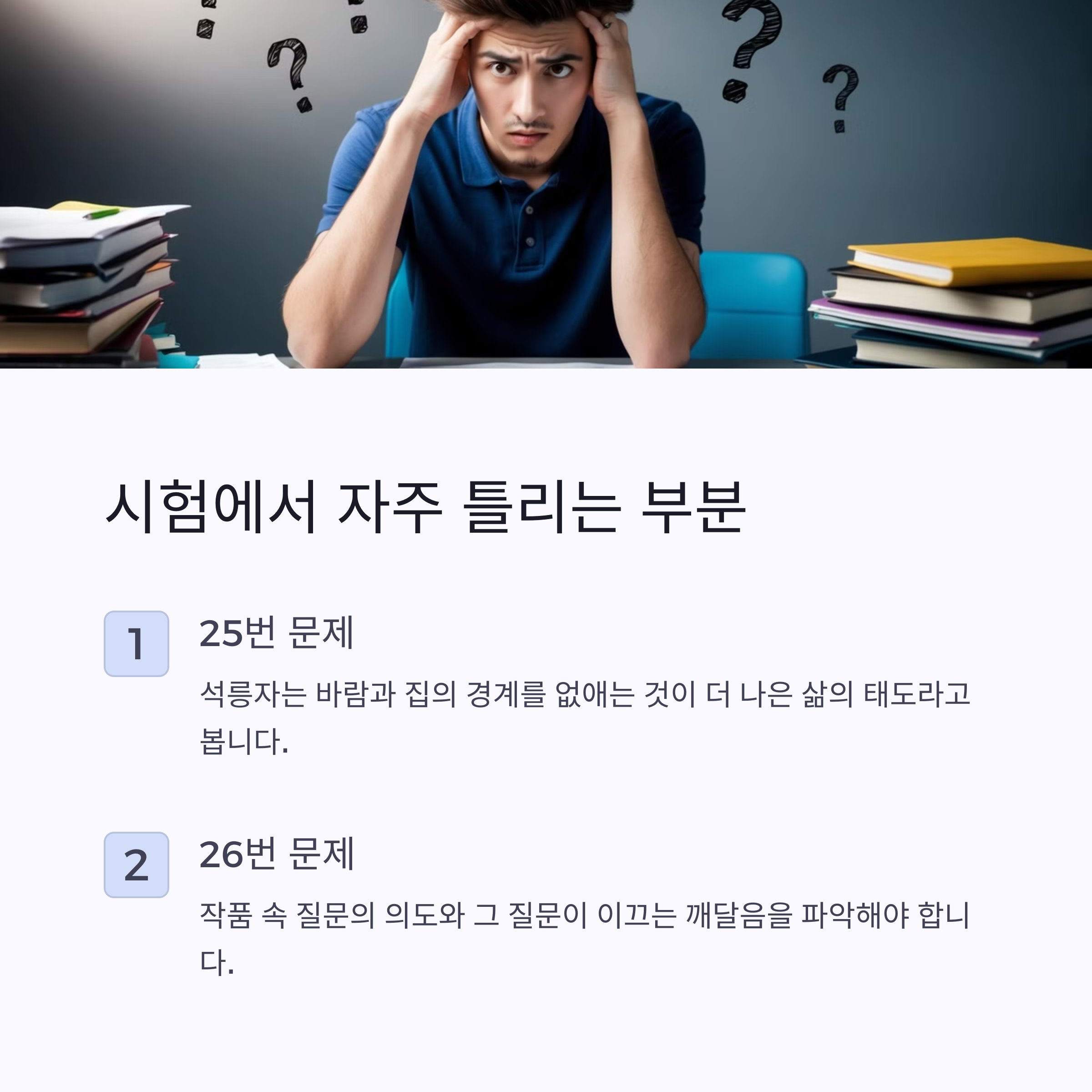 25번 문제에서 '석릉자'의 견해를 어떻게 파악해야 할까요?
