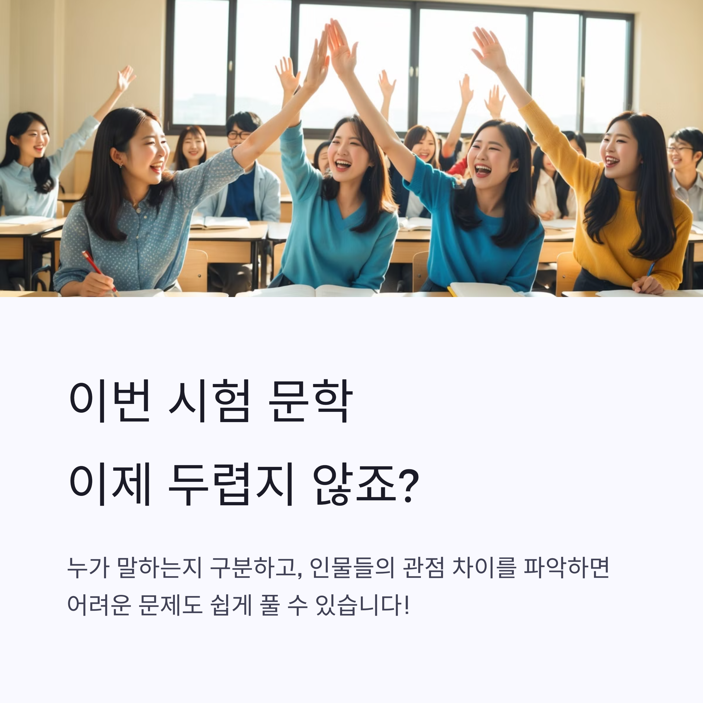하지만 이제 조금은 자신 있으시죠? (가)에서는 '누가 말하는지'를 파악하는 것이, (나)에서는 '견해 차이'를 찾는 것이 핵심이었습니다. 이런 기본적인 접근법만 알아도 갈래복합 지문에 대한 두려움이 많이 줄어들 거예요.