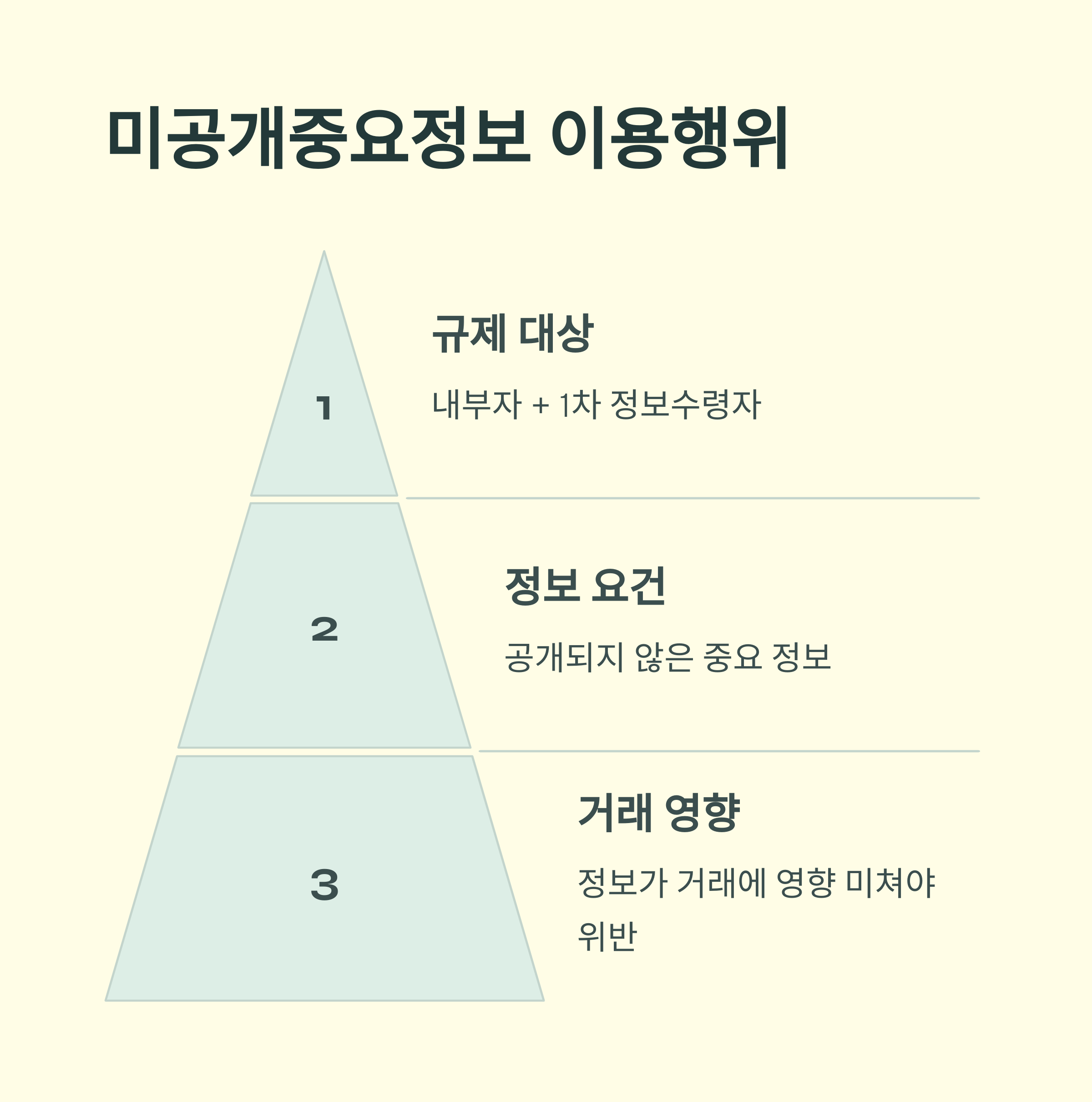 - 미공개중요정보 이용행위: 공개되지 않은 중요정보를 거래에 이용