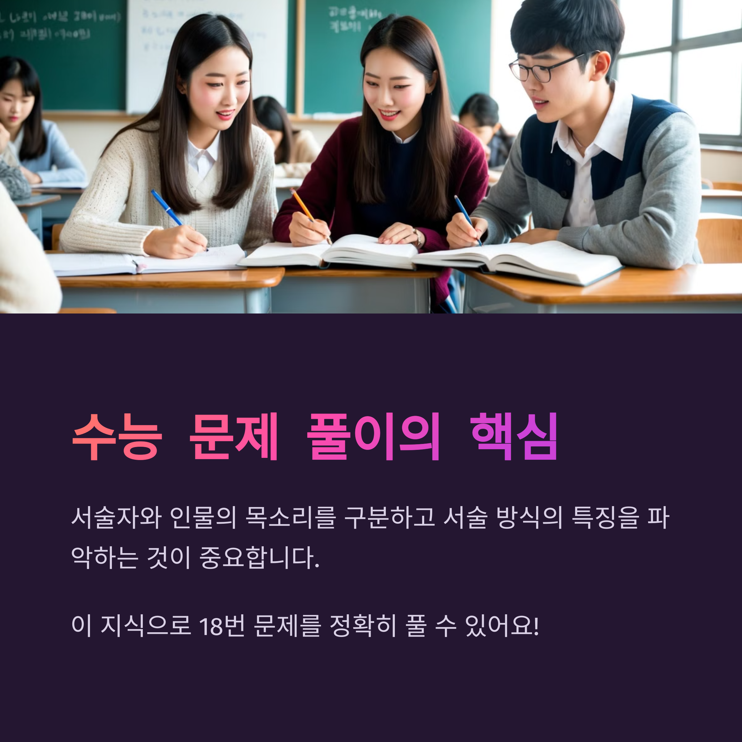 💡 TIP: 현대소설 문제에서 자주 등장하는 서술 방식 관련 용어는 미리 정리해두세요!