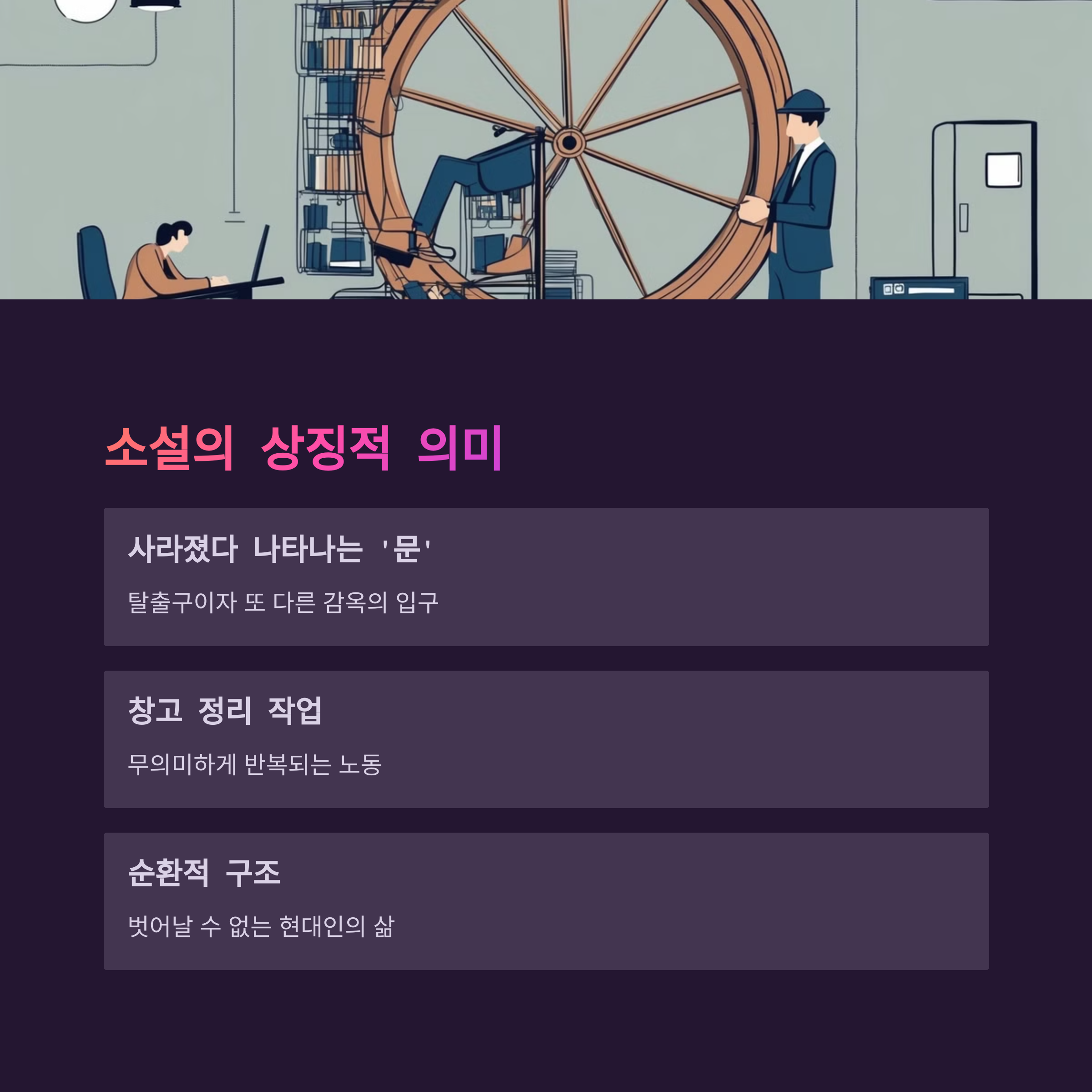 하지만 걱정 마세요! 이 소설은 단순한 비현실적 이야기가 아니라, 우리 현대인의 삶을 상징적으로 보여주는 작품이에요. 끝없이 반복되는 노동에 자신의 삶을 저당 잡힌 현대인의 모습을 섬세하게 표현했답니다. 오늘은 이 작품의 진짜 의미를 함께 파헤쳐 볼게요!