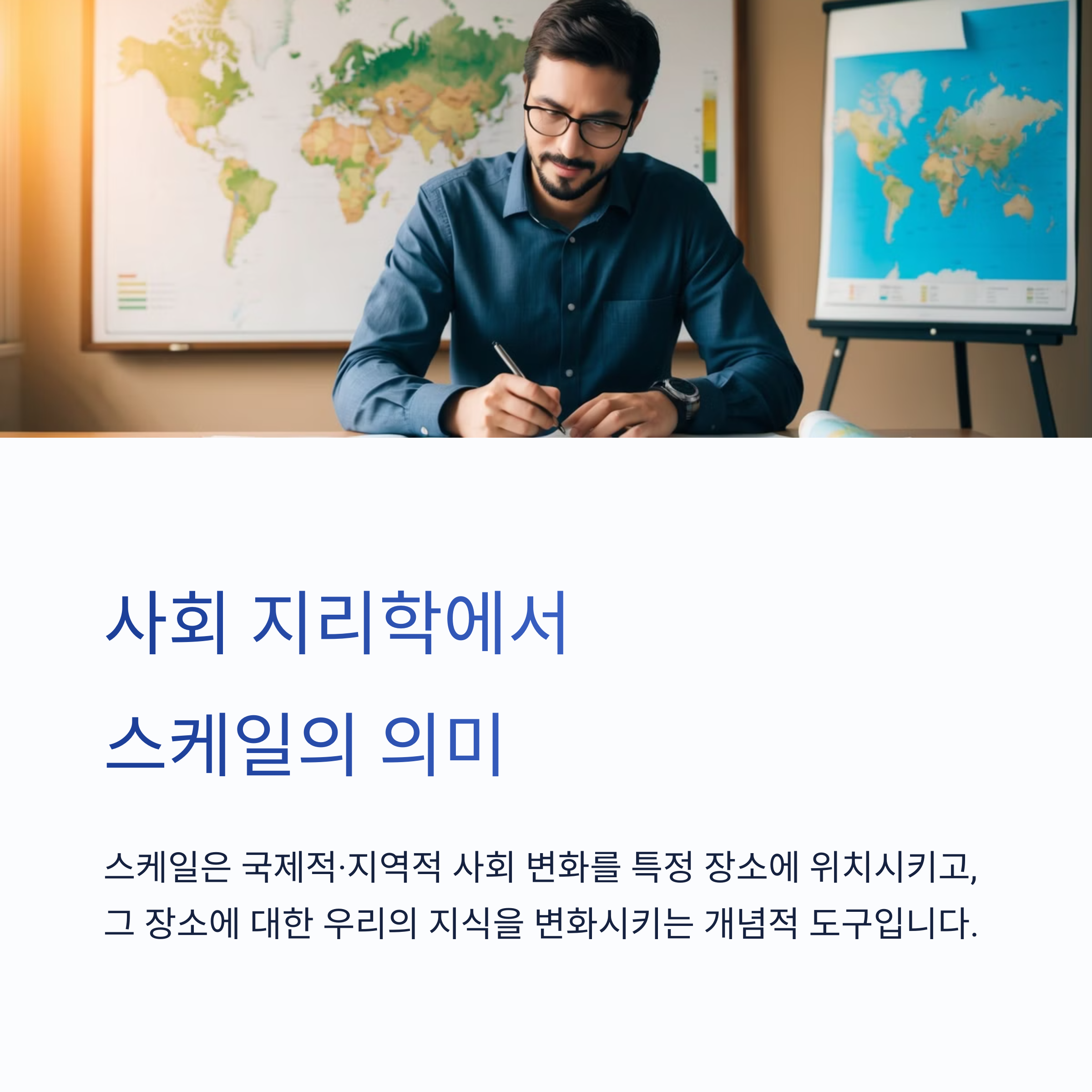 스케일은 사회 지리학에서 사회적·공간적 관계를 분석하는 데 필수적인 개념이에요.