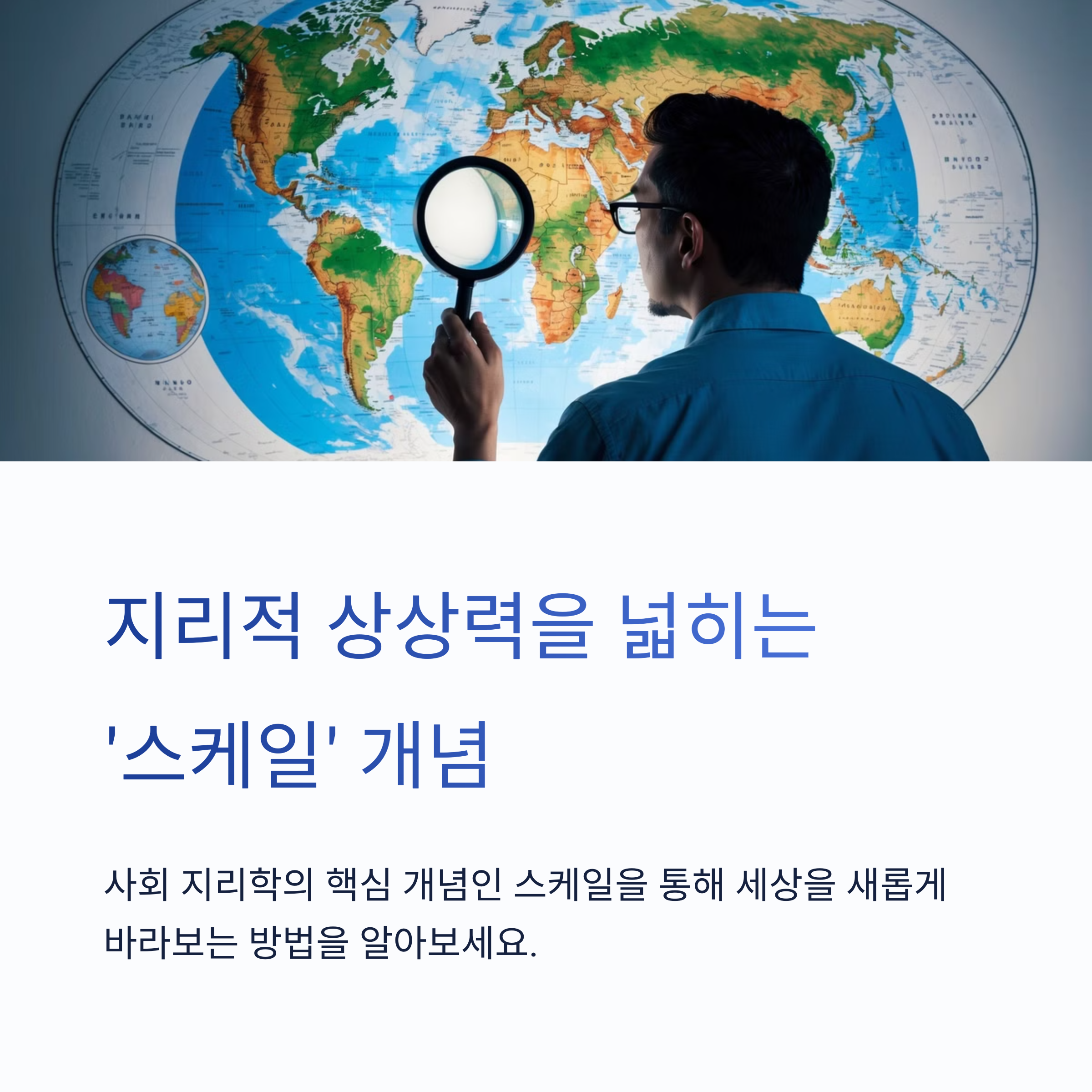 오늘은 사회문화와 지리를 연결짓는 핵심 개념, 바로 ‘스케일’에 대해 알아보려 해요.